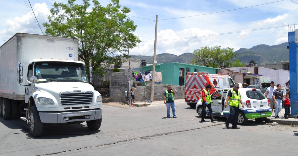 Sin embargo, dejó una huella de frenado de aproximadamente 5 metros, luego de que el vehículo March de Aguas de Saltillo conducido por David Campos Angulo se le atravesó.