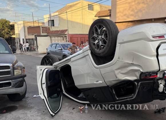 Un conductor que tenía un mes con su camioneta modelo 2025 sufrió un accidente en las calles de la colonia Virreyes, donde fue impactado y volcó.