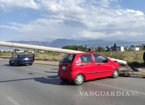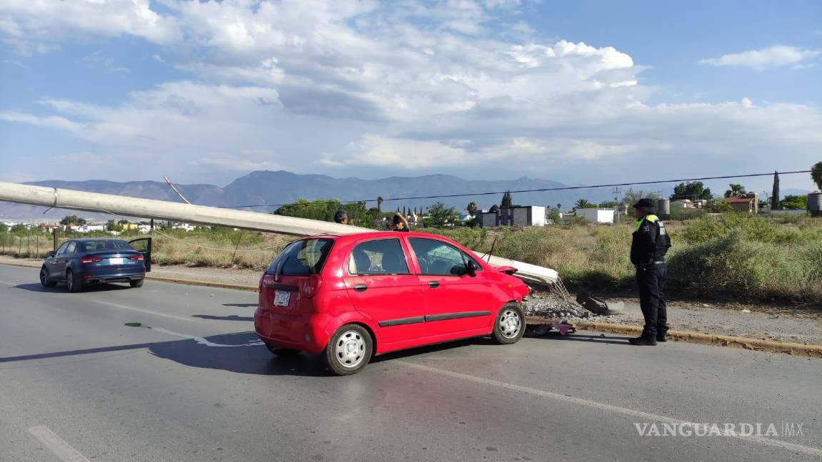 Choca con poste de concreto y le cae encima, en Saltillo
