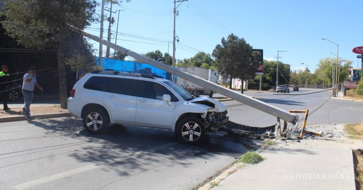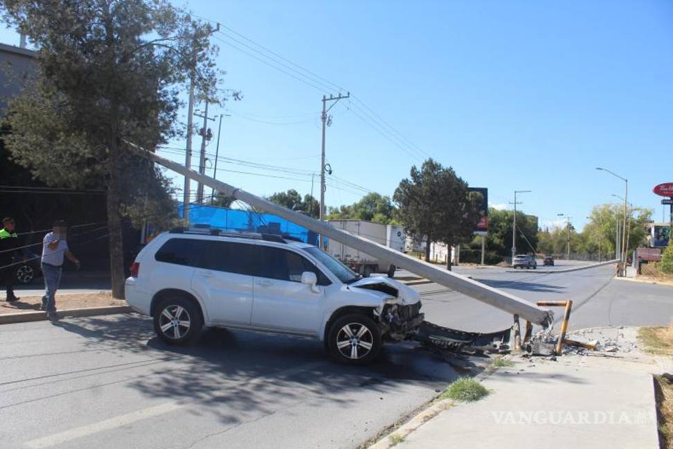 Un conductor aparentemente alcoholizado puso en riesgo la vida de su esposa, tras chocar la camioneta que manejaba y derribar tres postes de la Comisión Federal de Electricidad (CFE), en Saltillo.