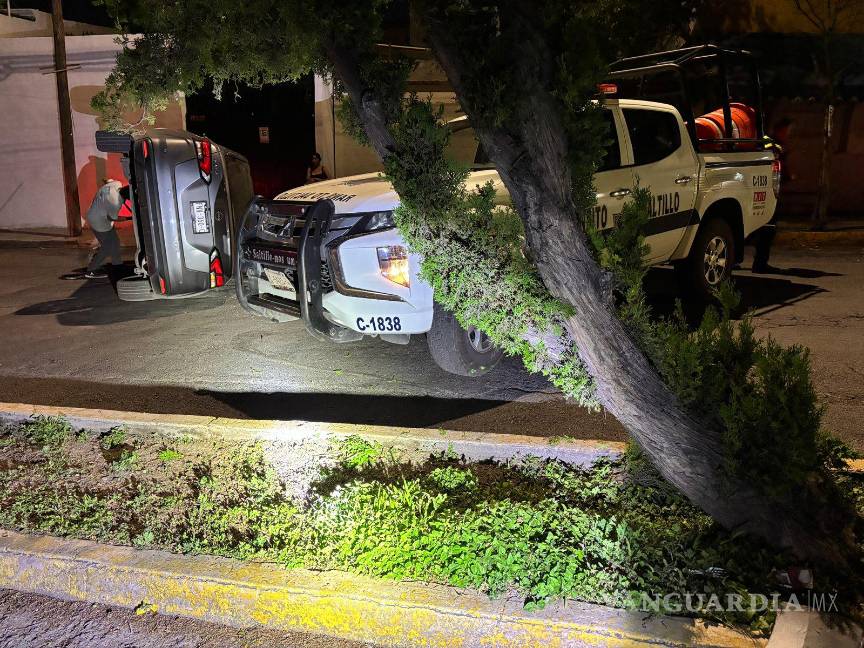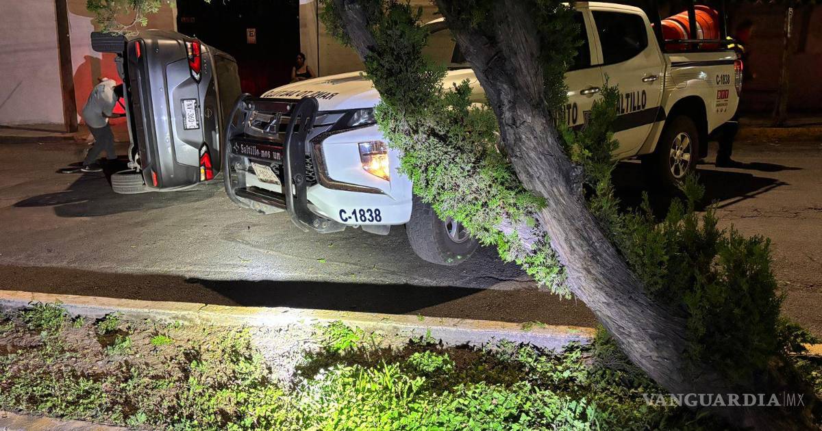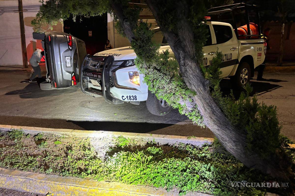 Choca contra árbol y vuelca al sur de Saltillo; conductor y su novia resultan ilesos