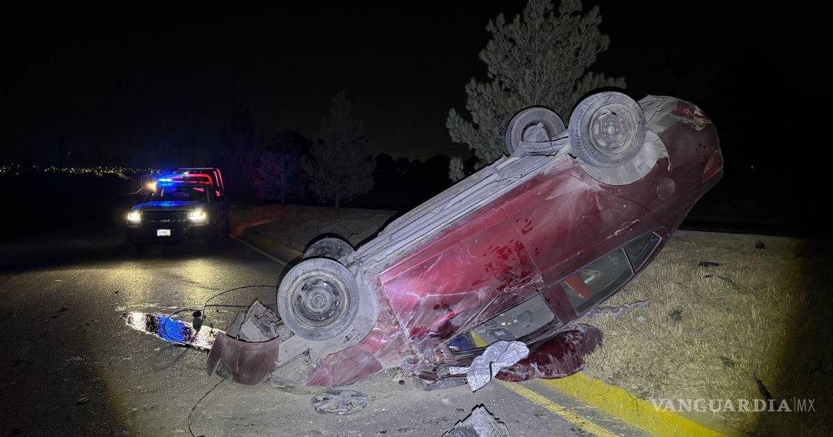 Un automóvil Chevrolet Aveo terminó volcado sobre la Calzada Antonio Narro, al sur de Saltillo, luego de que su conductor perdiera el control al salir de una curva, impactara una luminaria y provocara la obstrucción parcial de la vialidad.