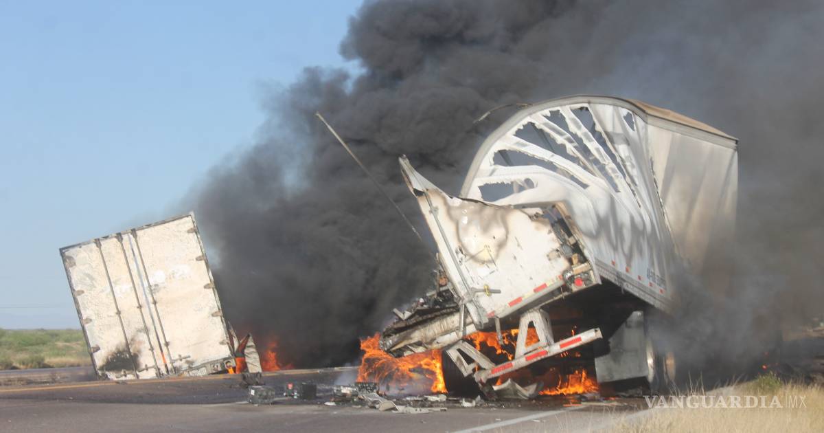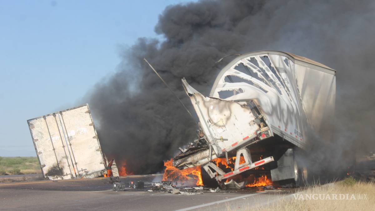 PARRAS DE LA FUENTE.- Un tráiler se impactó contra otra unidad que se había quedado varada en la carretera Saltillo-Torreón, luego del choque el vehículo de carga pesada se incendió y el conductor no pudo escapar, por lo que murió calcinado.