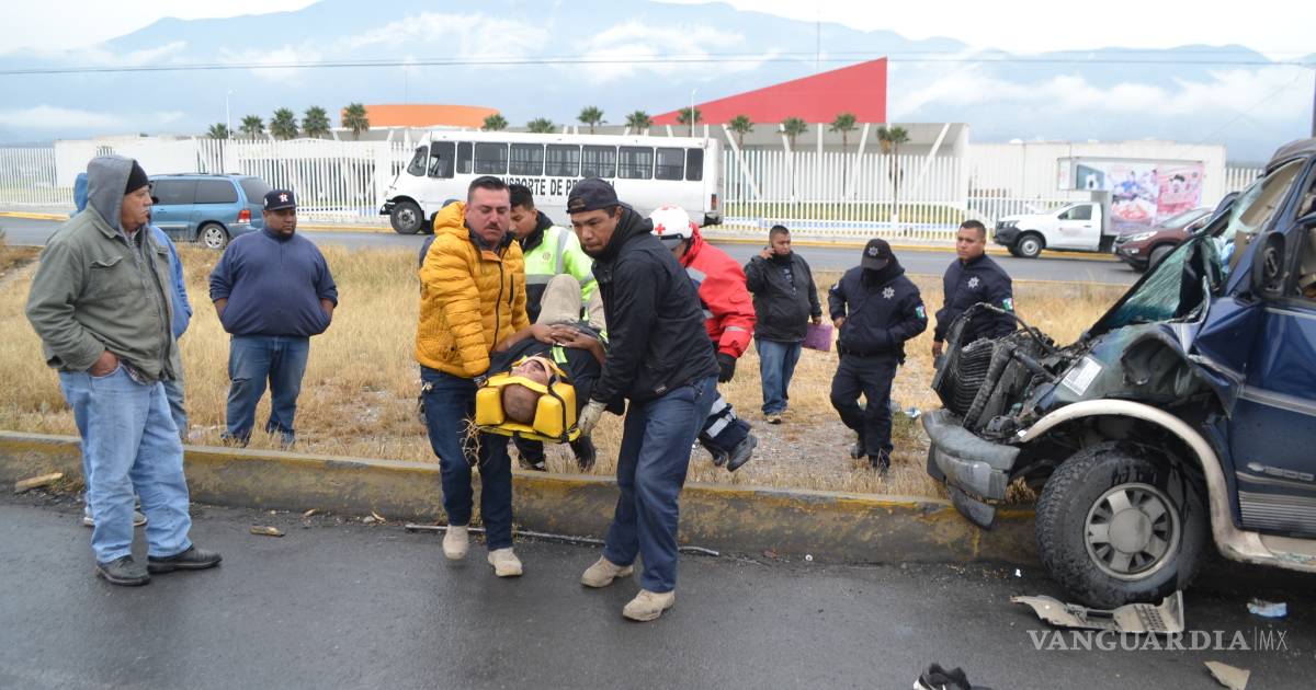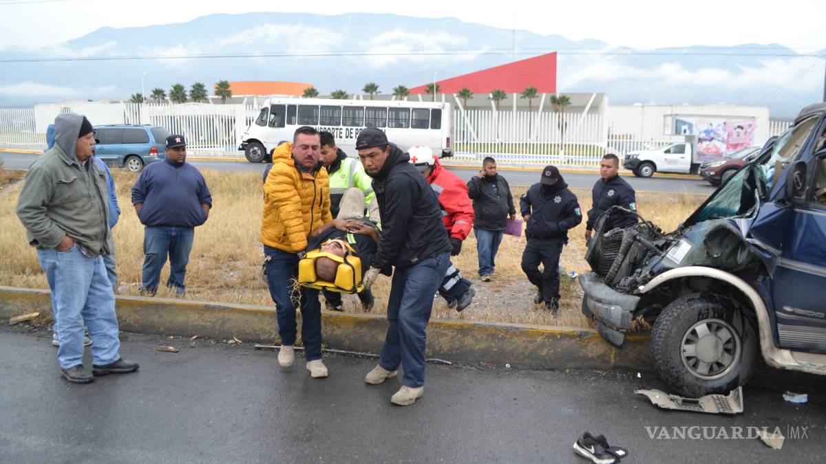 Con las piernas atrapadas entre el tablero y el motor quedó Juan Hernández, luego de chocar contra la parte trasera del camión de personal que le quitó el derecho de paso a la altura de las instalaciones de la UAdeC, en Arteaga.
