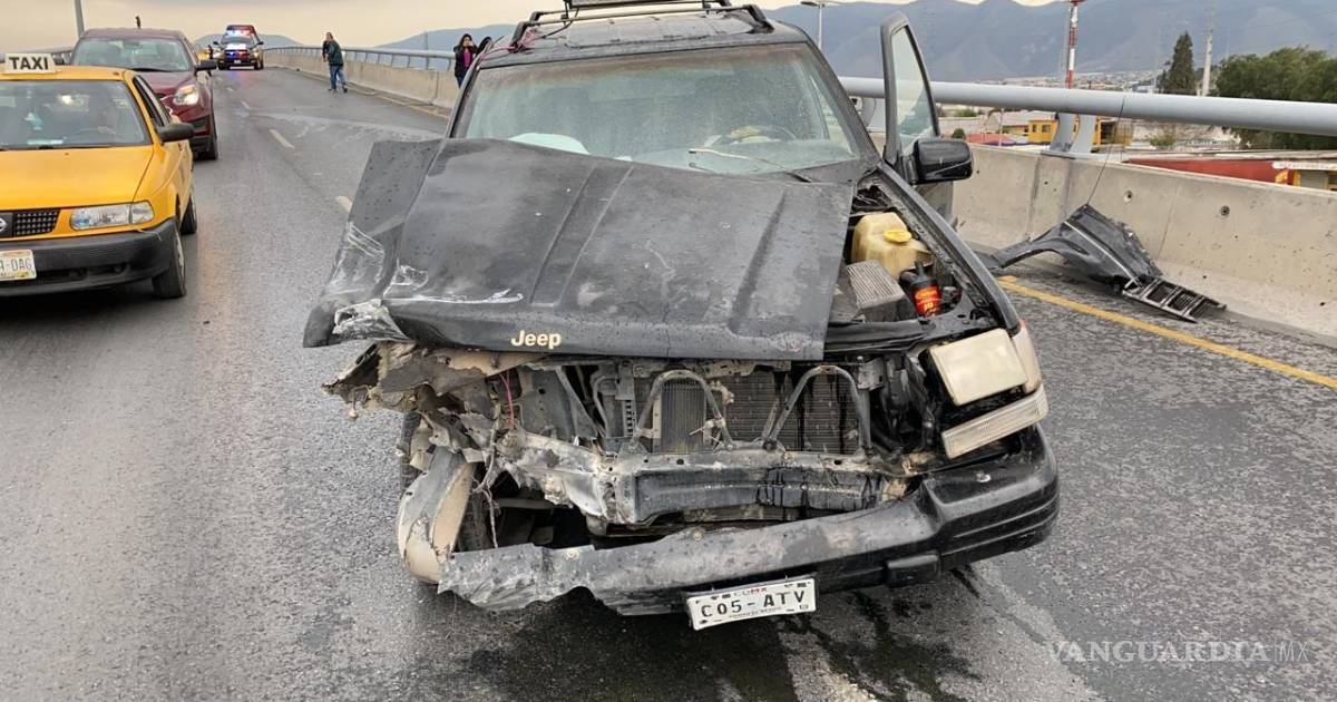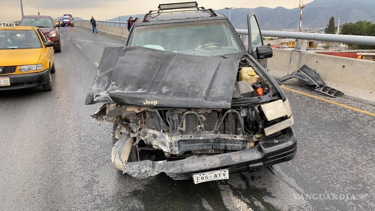 Por la velocidad y la falta de precaución, el conductor de una camioneta Jeep Cherokee se estrelló contra la base tubular de protección de un puente, sobre el Distribuidor Vial El Sarape, sobre el que va de Fundadores hacia Paseo de La Reforma con dirección al oriente .