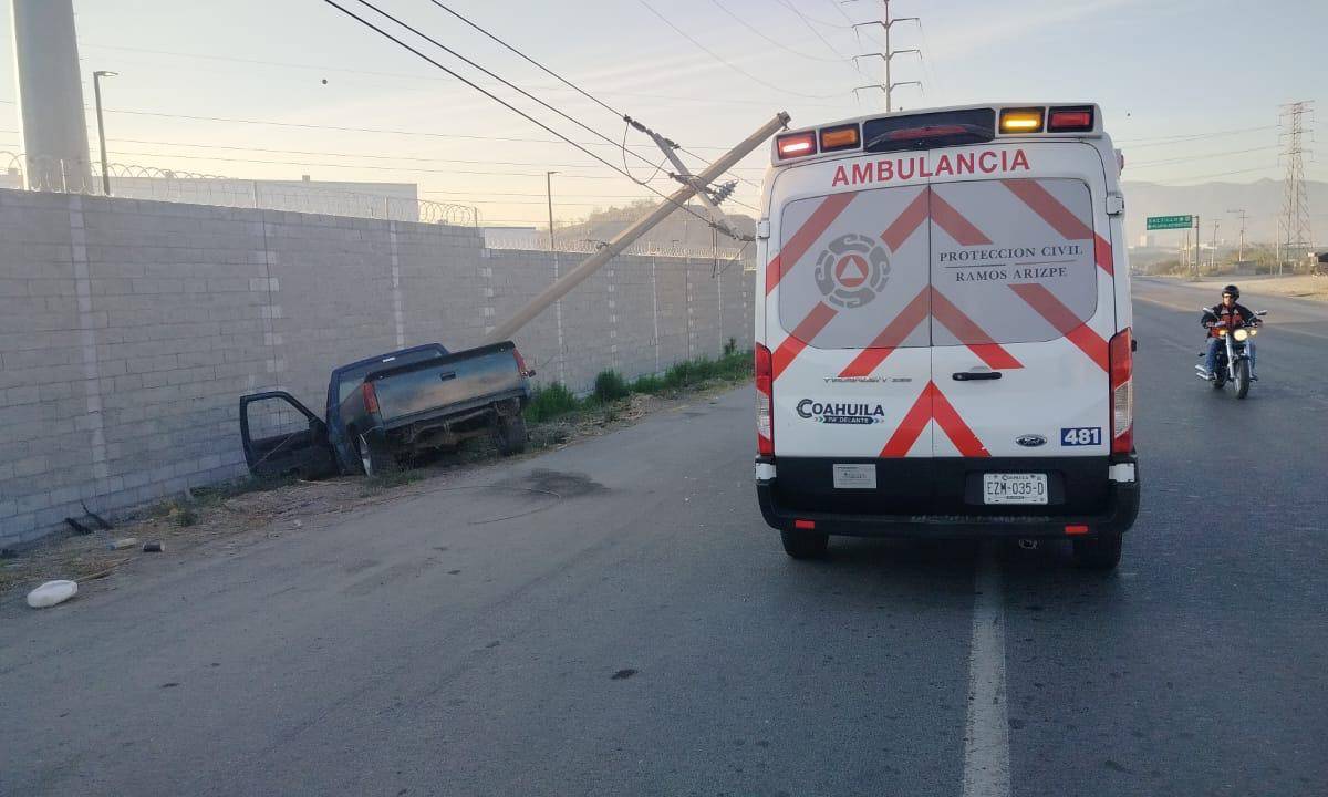 Un conductor que presuntamente manejaba en estado de ebriedad protagonizó un aparatoso accidente durante la mañana de este domingo, luego de salirse del camino y derribar un poste de concreto propiedad de la Comisión Federal de Electricidad (CFE), a la altura de la carretera a Monclova, en Ramos Arizpe.
