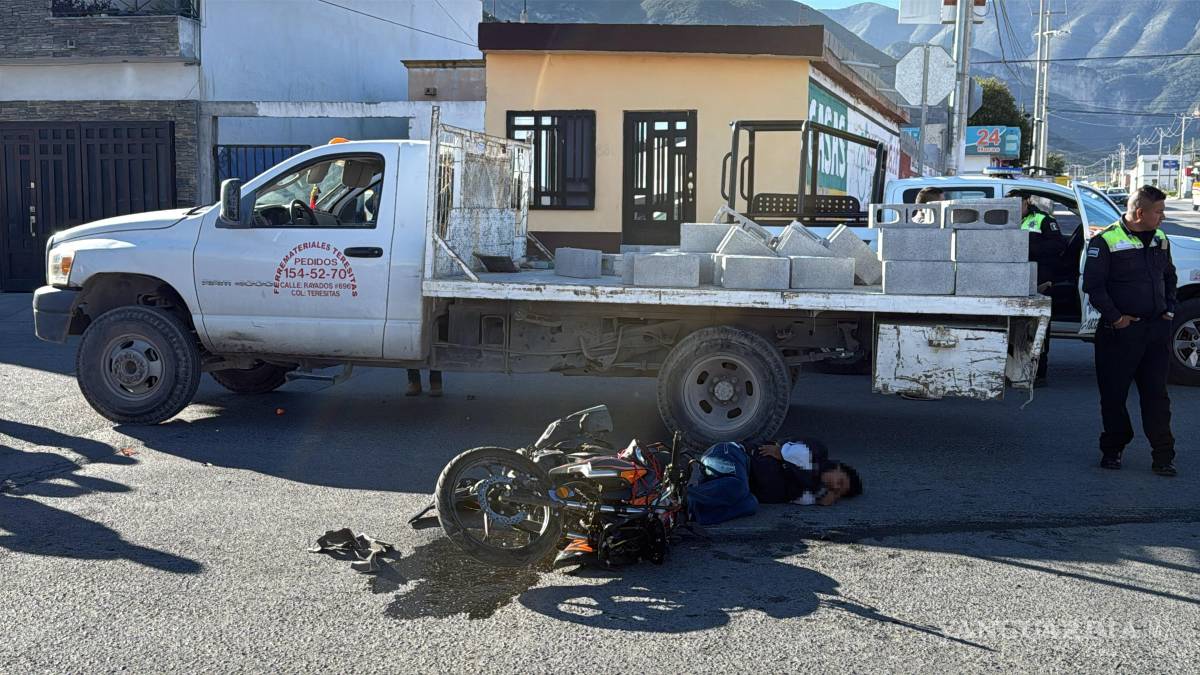 Un motociclista resultó con golpes en varias partes del cuerpo luego de verse involucrado en un accidente automovilístico de consideración ocurrido en la colonia Las Teresitas, al sur de Saltillo. El incidente generó movilización de los cuerpos de emergencia y llamó la atención de vecinos de la zona.