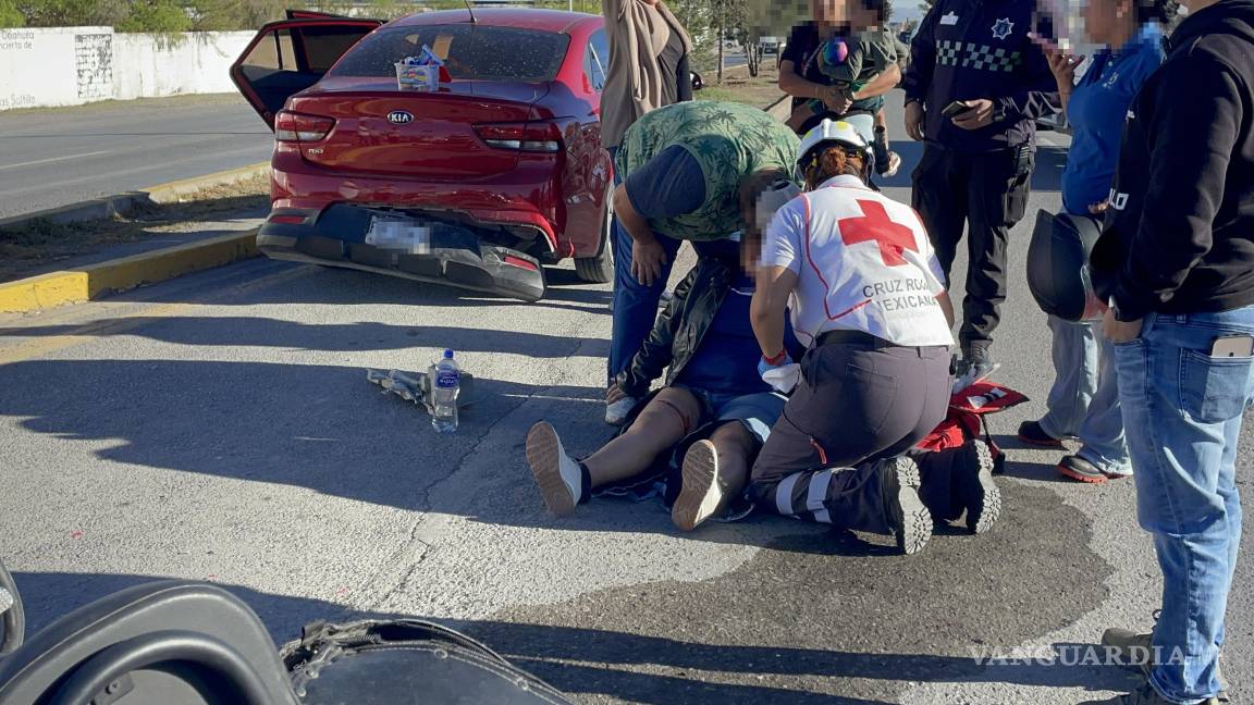 Choca motociclista por alcance y termina lesionada, en Saltillo