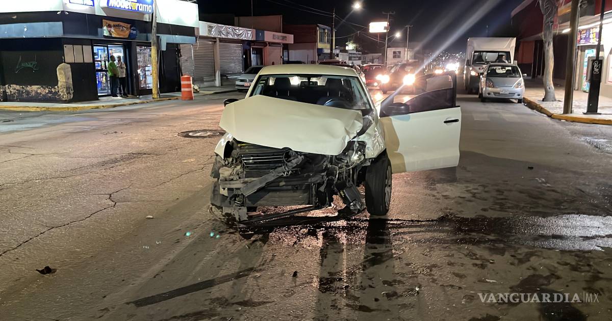 Choca presuntamente ebrio en el centro de Saltillo y huye; ignoró el rojo