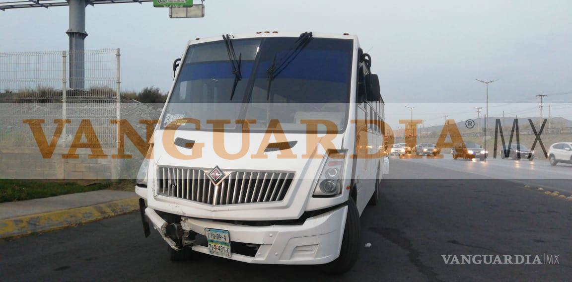 Un transporte de personal no guardó su distancia de seguridad cuando se desplazaba por la carretera Monterrey-Saltillo y fue a chocar por alcance a un vehículo.