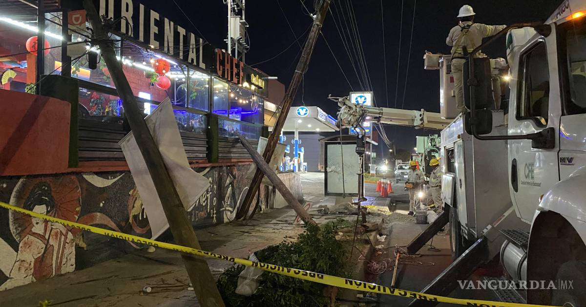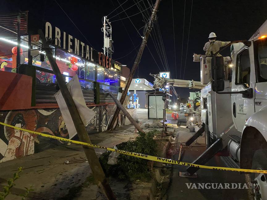 Más de dos horas sin luz permaneció la colonia Virreyes, luego de que un conductor perdió el control de su vehículo y se impactó contra tres postes ubicados sobre el bulevar Venustiano Carranza, provocando su derribo. Esto causó el desabasto de electricidad y cuantiosos daños materiales, por lo que el responsable fue detenido en Saltillo.
