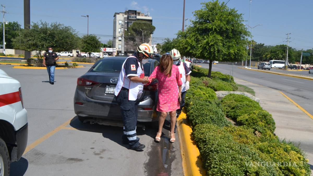 Tras el golpe en el costado izquierdo del vehículo, María resultó lesionada y fue atendida por personal de la Cruz Roja, quien solo la valoró, pues no presentaba lesiones graves y se quedó en el lugar para solucionar el accidente.