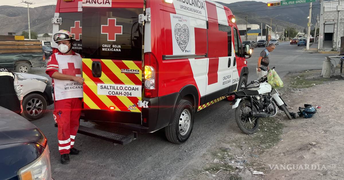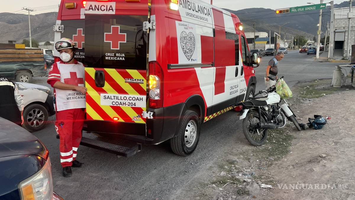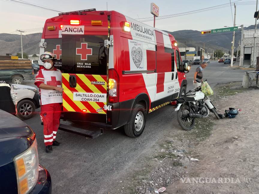 Dos trabajadores de la albañilería resultaron lesionados al chocar la moto en la que viajaban contra una camioneta en movimiento, en Saltillo.