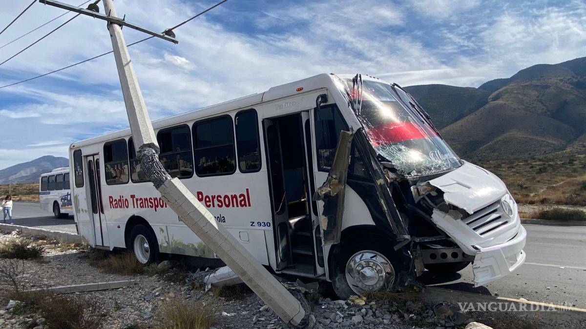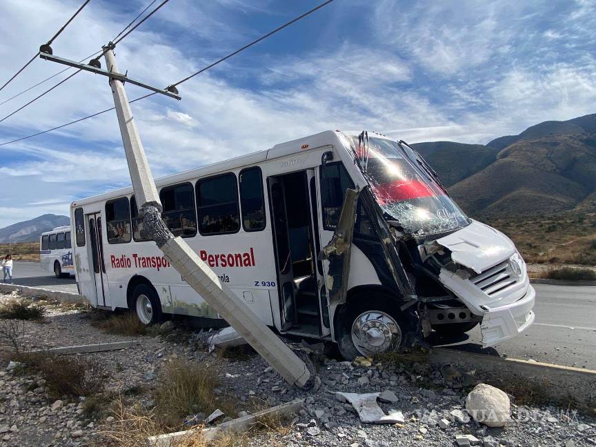 Chofer de transporte de personal se duerme y choca contra poste en Saltillo
