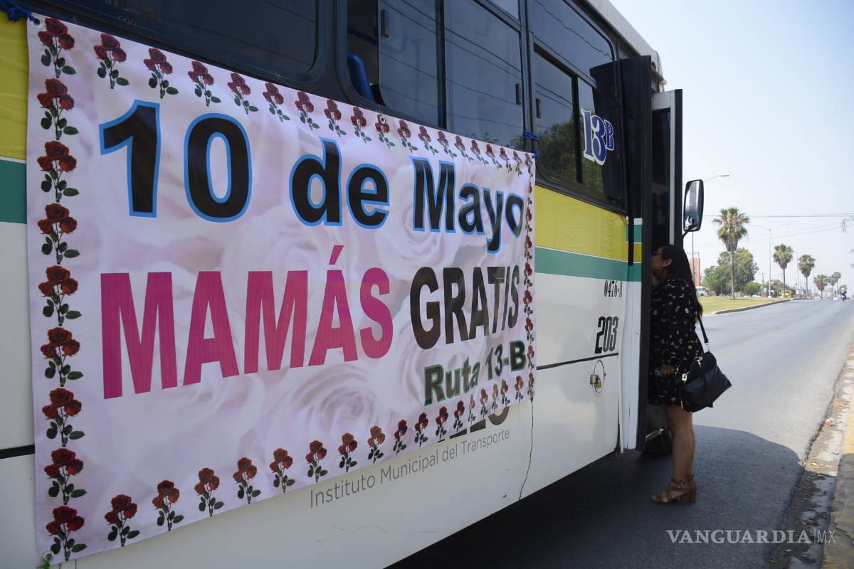 Saltillo, Coahuila.- Con grandes lonas colgadas en algunas de las unidades de la ruta 13B, los choferes no solo felicitan a las mamás saltillenses sino anuncian los viajes gratis que todo el día tendrán para las reinas del hogar.