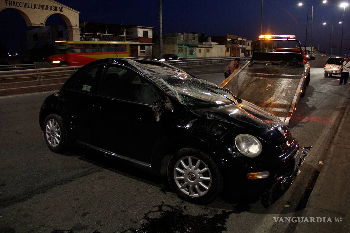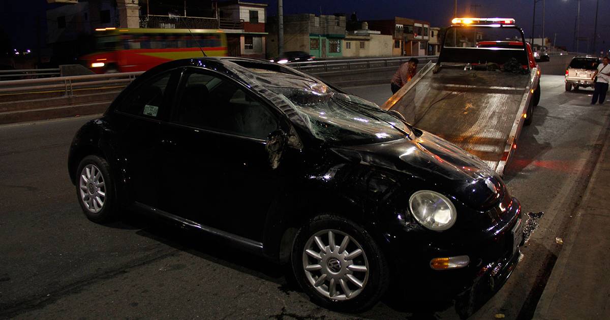 Esto lo llevó a chocar a un Volkswagen Beattle el cual luego del impacto se proyectó contra el muro de contención y volcó en repetidas ocasiones, terminado con los neumáticos hacia arriba sobre el periférico.