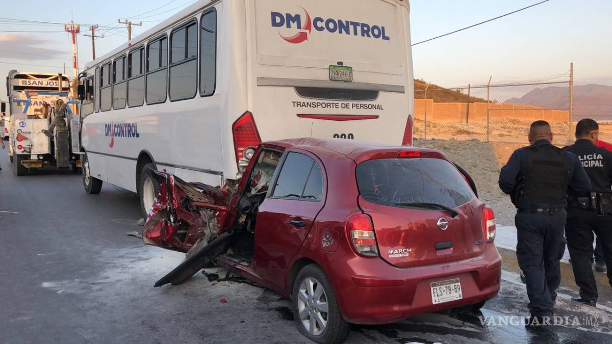 Alrededor de las 7:30 de la mañana un vehículo compacto se estrelló contra un camión de personal en el kilómetro 9 de la carretera Saltillo con dirección a Monterrey.