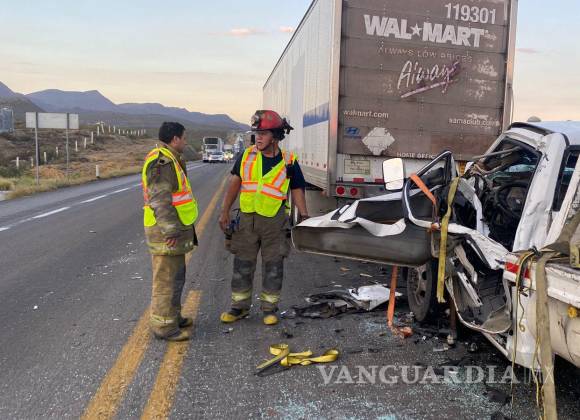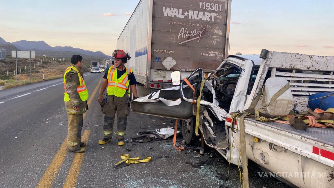 Dos ocupantes de un camión de plataforma sufrieron heridas graves al colisionar por alcance con un tráiler que circulaba por el libramiento norponiente en el territorio de Saltillo.