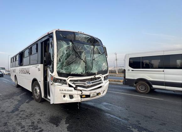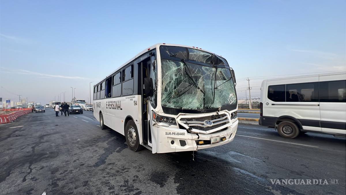 El percance se registró alrededor de las 6:00 horas, frente a la entrada del parque industrial Santa María, cuando la unidad de transporte, perteneciente a la empresa Ibsom, se dirigía a Monterrey con 15 trabajadores a bordo.