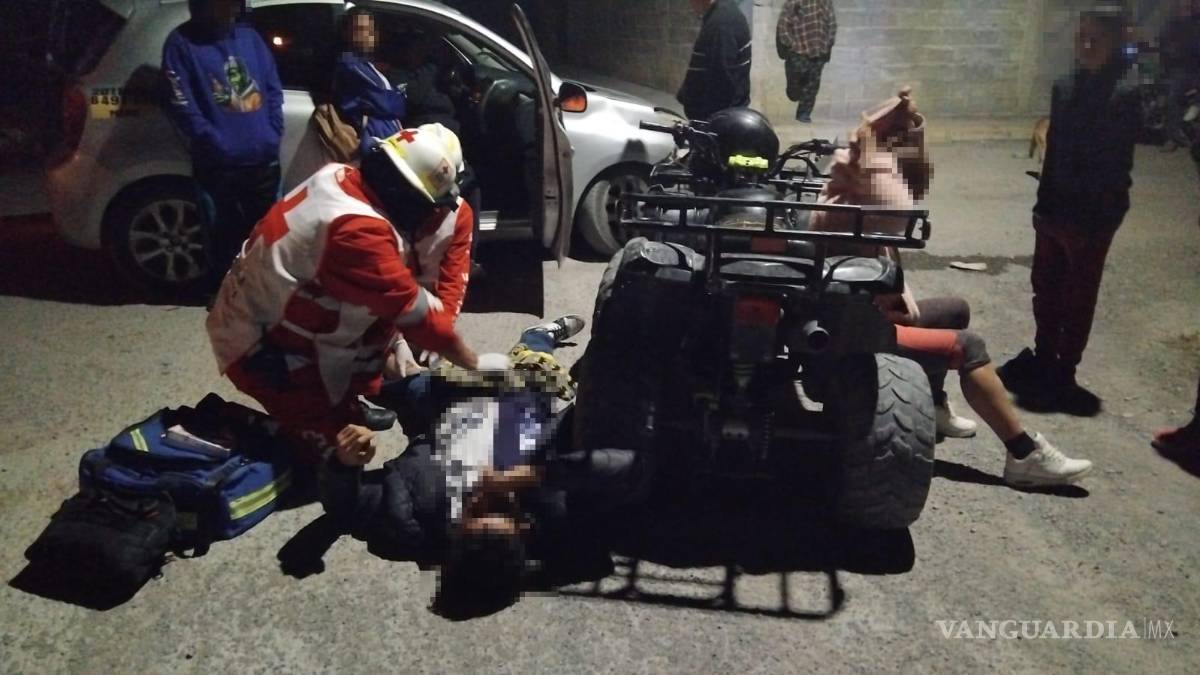 Un fuerte accidente entre una cuatrimoto y un taxi dejó como saldo a una pareja lesionada la noche de este miércoles en la colonia Independencia de Parras de la Fuente, Coahuila.