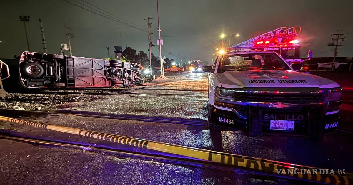 Una persona sin vida y al menos 15 trabajadores lesionados fue el saldo de un aparatoso accidente registrado durante la madrugada en Saltillo, luego de que un tren impactara un transporte de personal que quedó volcado a un costado de la vialidad.