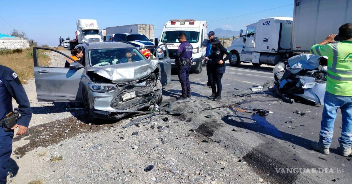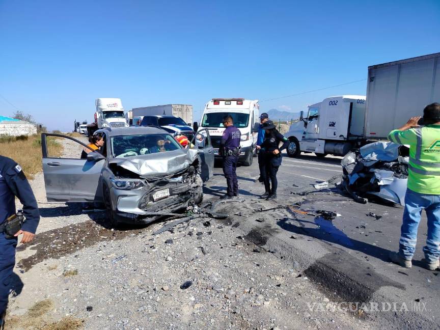 El percance ocurrió en el kilómetro 3.2, metros antes de llegar a la carretera antigua a Monclova, lo que movilizó a los cuerpos de emergencia de Protección Civil y Bomberos. De acuerdo con los primeros reportes, el accidente se produjo cuando la conductora de un vehículo Toyota Corolla, perteneciente a la empresa Cemex, circulaba en sentido poniente a oriente.