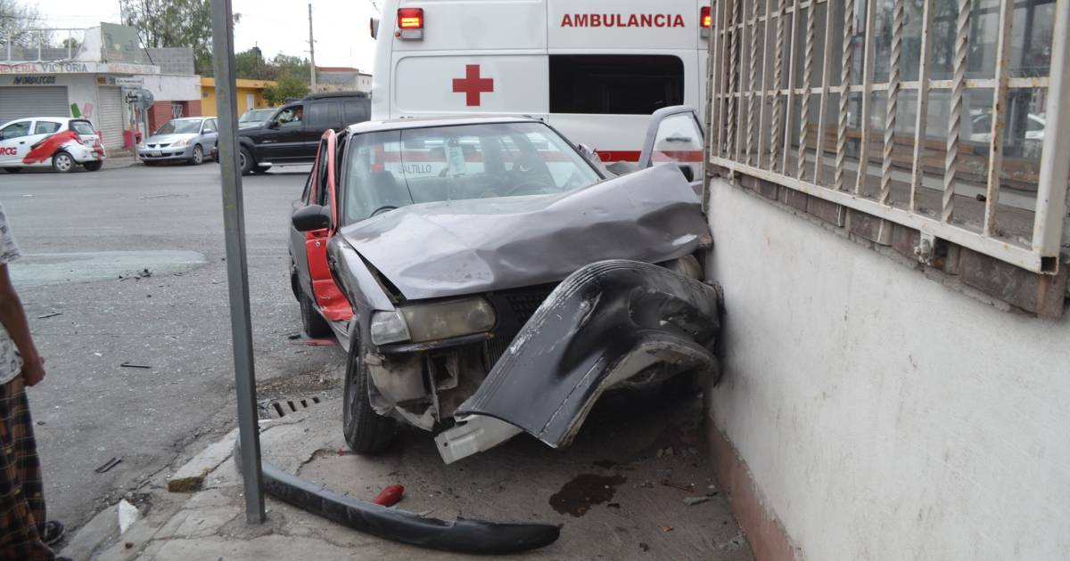 Un accidente en el cruce de Francisco Coss y Fermín Espinosa Armillita, en la Zona Centro, dejó cuantiosos daños a un comercio.