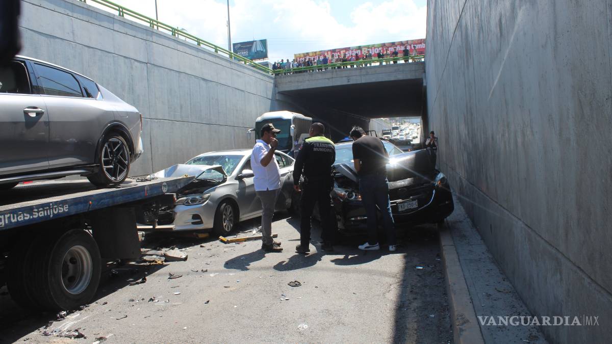 Un accidente automovilístico múltiple se registró la tarde de este domingo en el paso inferior del periférico Luis Echeverría Álvarez, frente a la colonia Vicente Guerrero, al sur de Saltillo.