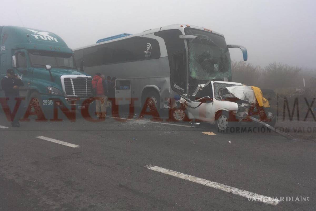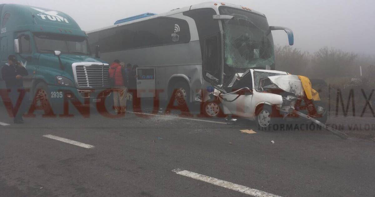 Saltillo.- Dolor, desolación y tristeza dejó como resultado el accidente múltiple ocurrido sobre la carretera libre a Monterrey, pues un hombre y su hija menor de edad murieron prensados al interior de su vehículo al ser impactados por un autobús.