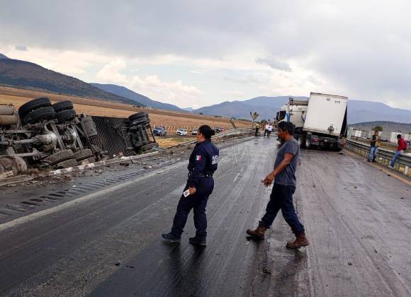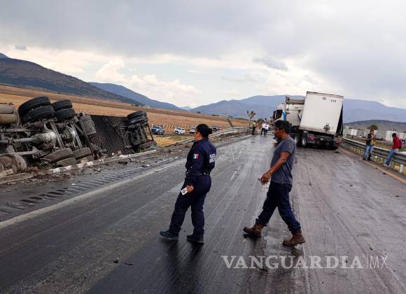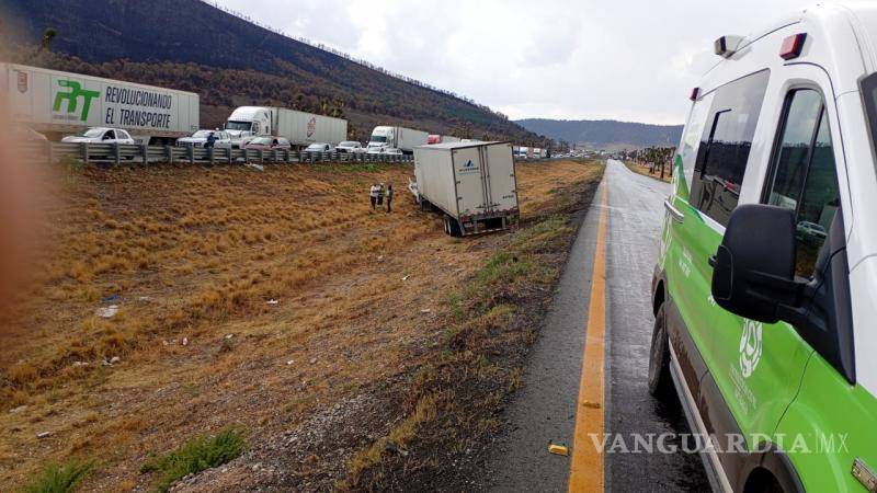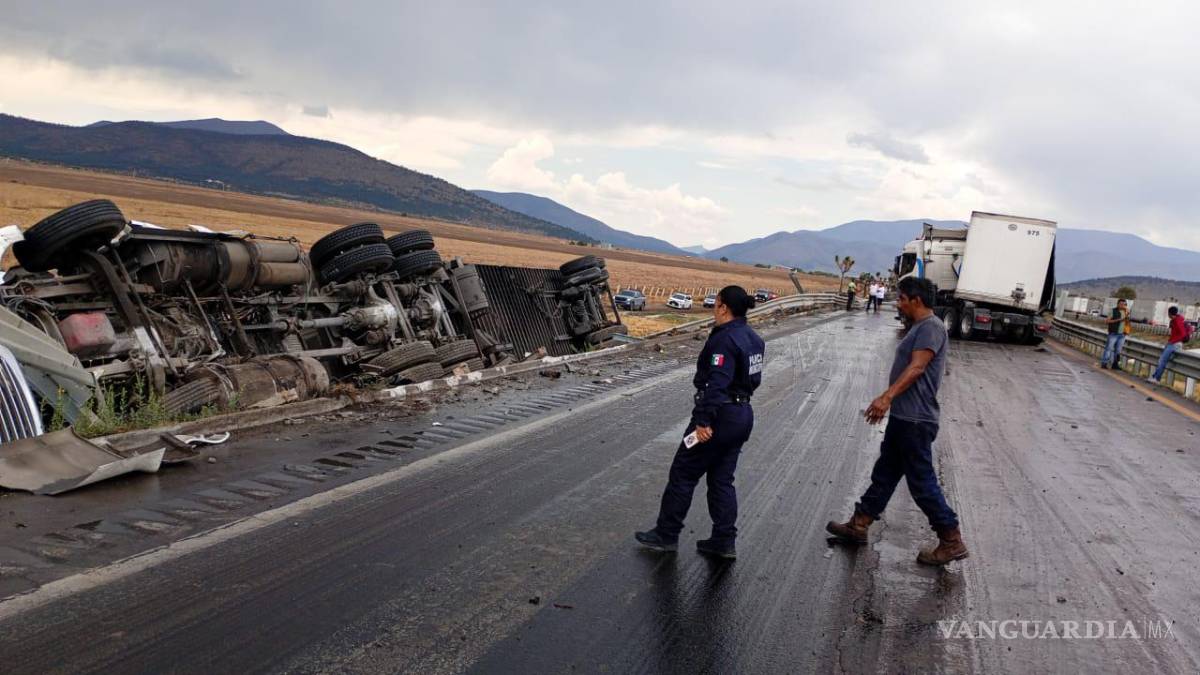 El accidente, atribuido a la intensa lluvia, ocurrió en el carril hacia Saltillo e involucró una volcadura y la salida de camino de un tráiler; no hubo personas lesionadas