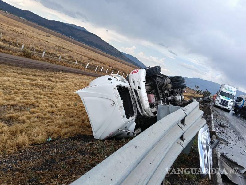 Un choque múltiple con volcadura y salida de camino mantiene bloqueada la carretera federal 57 en el tramo Saltillo–Los Chorros, a la altura del ejido El Cedrito.