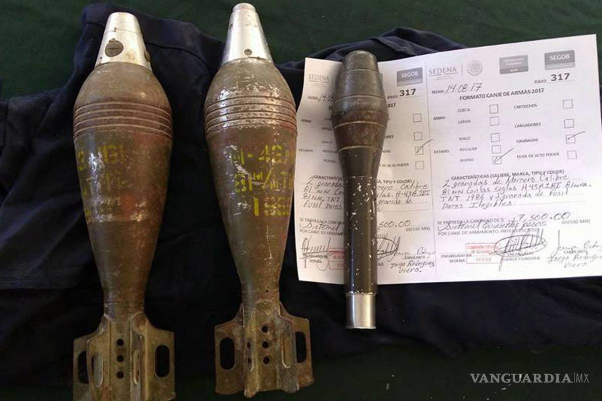 En otro hecho, en el módulo de Canje de Armas de la ciudad de Monclova un ciudadano hizo entrega de dos granadas de fragmentación, mientras que en el municipio de Ramos Arizpe, canjearon dos granadas más.