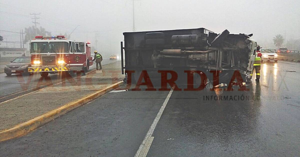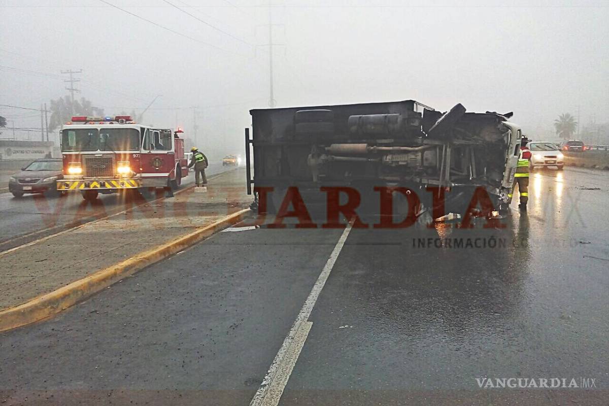Volcadura de camión por mal clima en Saltillo