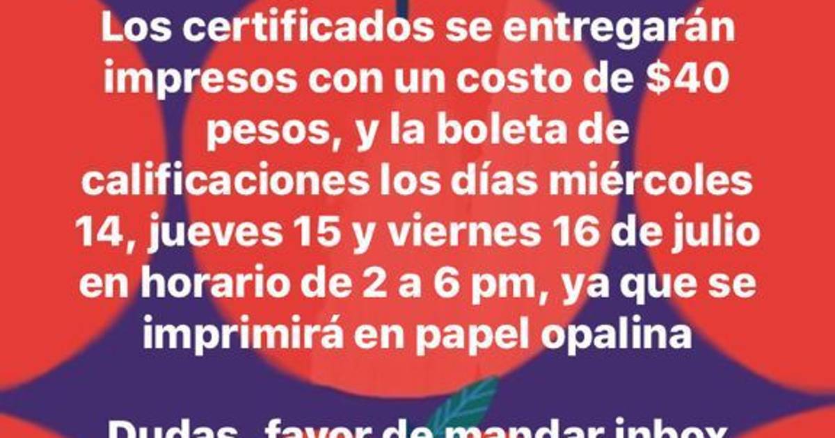 Aunque los mismos padres de familia fueron quienes denunciaron que se solicite un costo de 40 pesos, como en el caso de la Secundaria Jesús Alfonso Arreola Pérez, en donde se imprimirán dichos documentos en papel opalino, por lo que requieren de dicha cooperación.