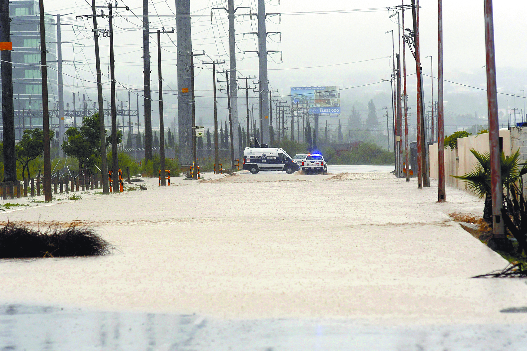 Fuertes lluvias inundan zona norte de la ciudad; exhiben fallas en desarrollos. NL y Tamaulipas también resienten golpe de tormenta; Texas está bajo emergencia Carreteras a Monterrey y 57 son cerradas ante deslaves, socavones e inundaciones