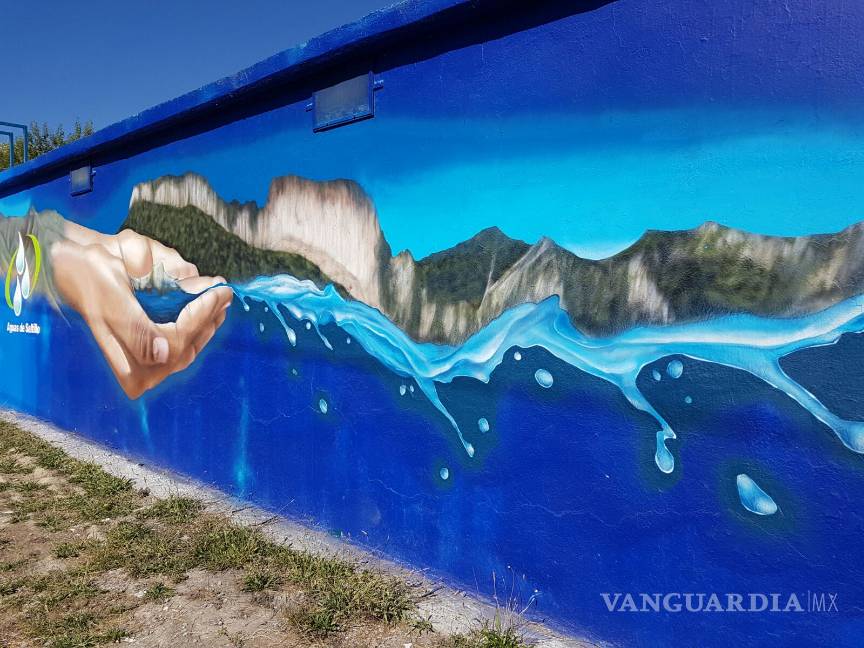 Nuevamente, el colectivo de arte urbano saltillense “Tripulaczión”, pintó uno de los muros que ocupan los depósitos de agua de la paramunicipal Aguas de Saltillo.