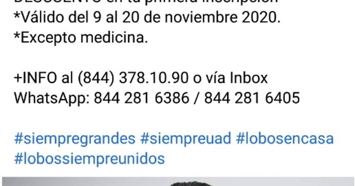 Mientras que para los alumnos de nuevo ingreso a los niveles de licenciatura o posgrado un 70% de descuento si pagan antes del 30 de noviembre la inscripción del próximo año