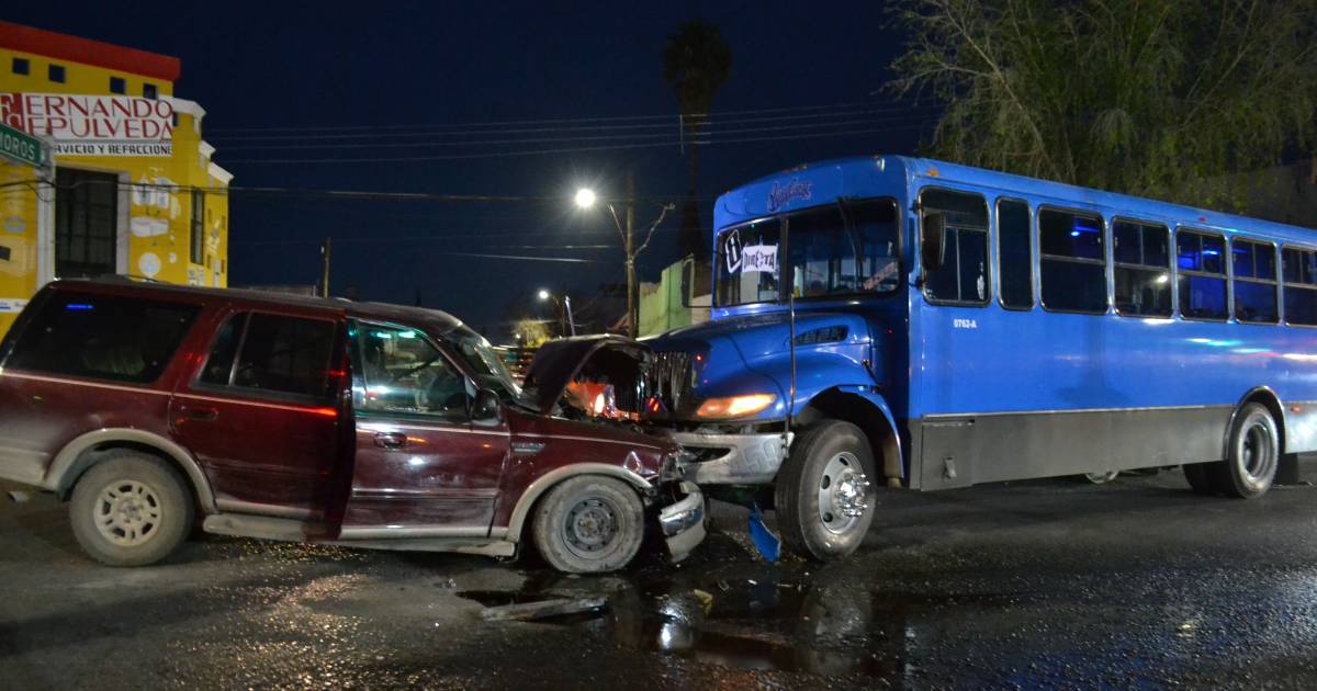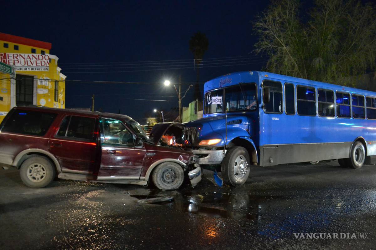 La noche de ayer se registró un choque entre una camioneta y un transporte urbano, en el cruce de Francisco Coss y Mariano Matamoros.