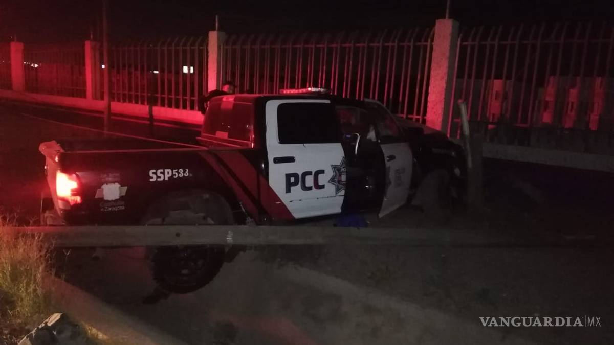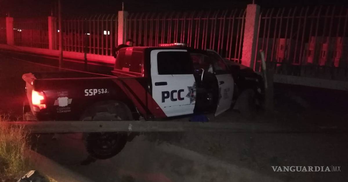 Una patrulla de la Policía Civil de Coahuila (PCC) acabó destruida al chocar contra un poste a las orillas de la carretera Monterrey-Saltillo.