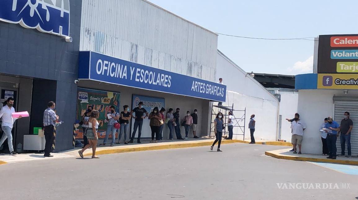 Saltillenses hacen fila en papelerías para adquirir lo estrictamente necesario en este regreso a clases