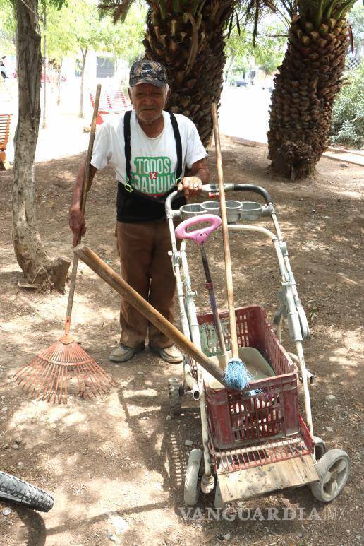 Vecinos de la colonia Panteones, al poniente de Saltillo, cerca del Cerro del Pueblo, cuentan la historia de un hombre que con un carrito y herramienta básica mantiene desde hace 35 años la plaza Ejército Constitucionalista.
