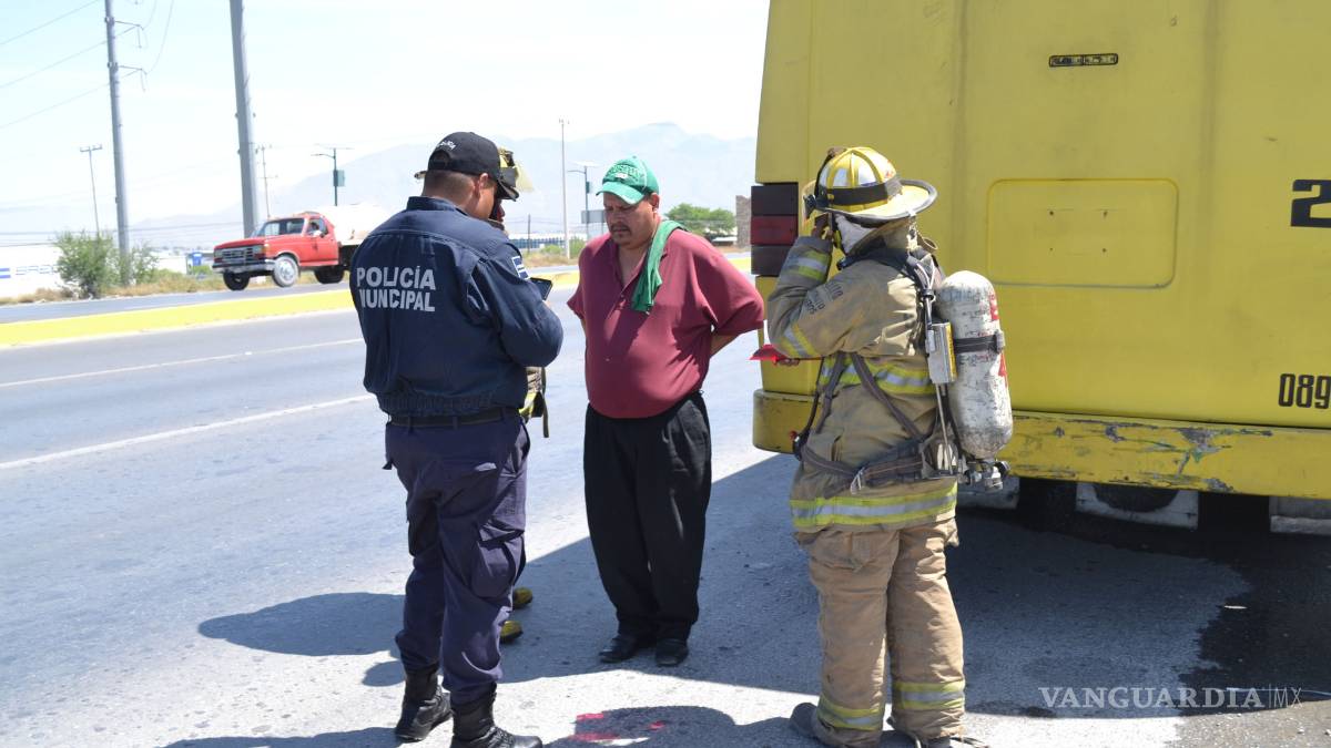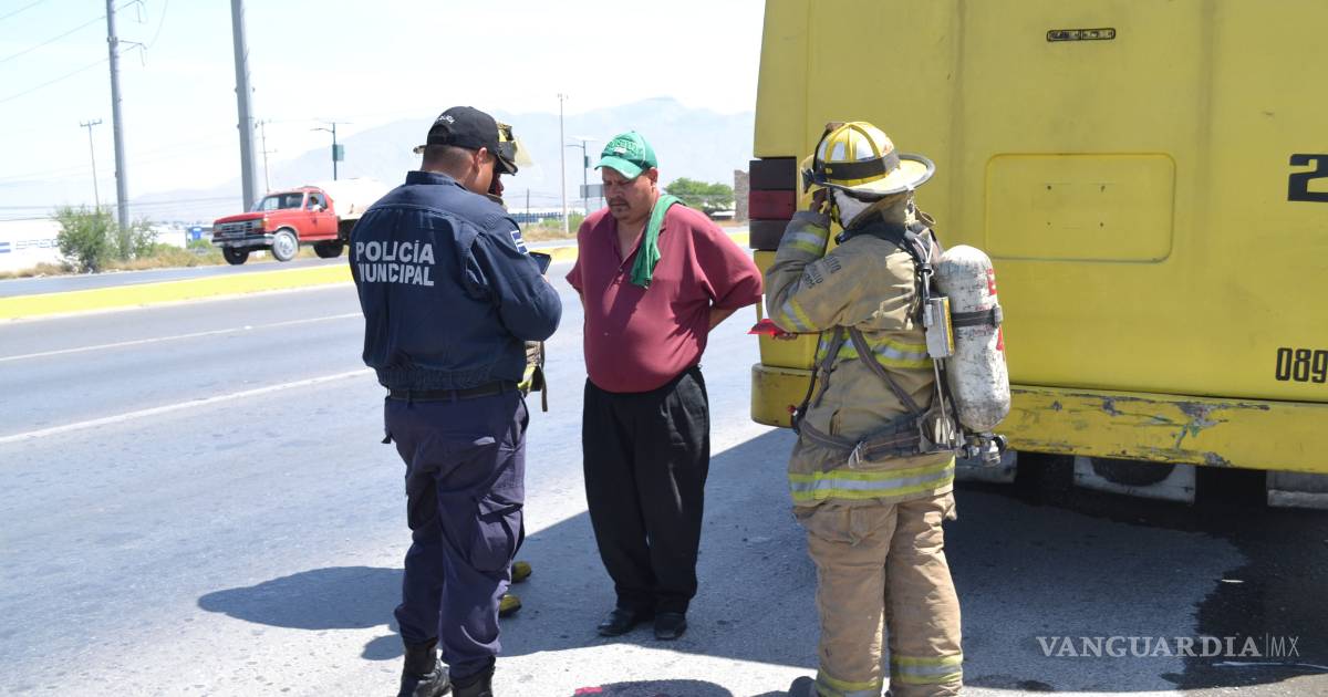 A punto de terminar incendiado estuvo un camión de transporte público de la ruta 9, luego de que al circular por Fundadores con dirección al Libramiento Oscar Flores Tapia, comenzó a salirle humo en las llantas traseras.