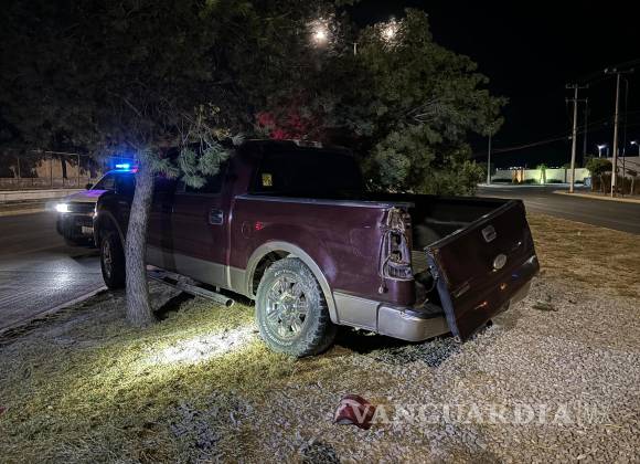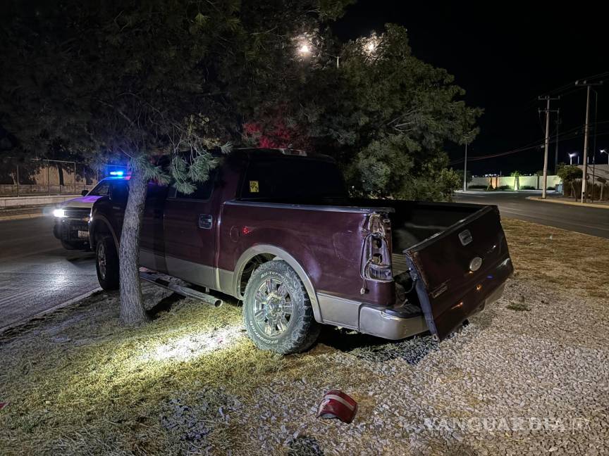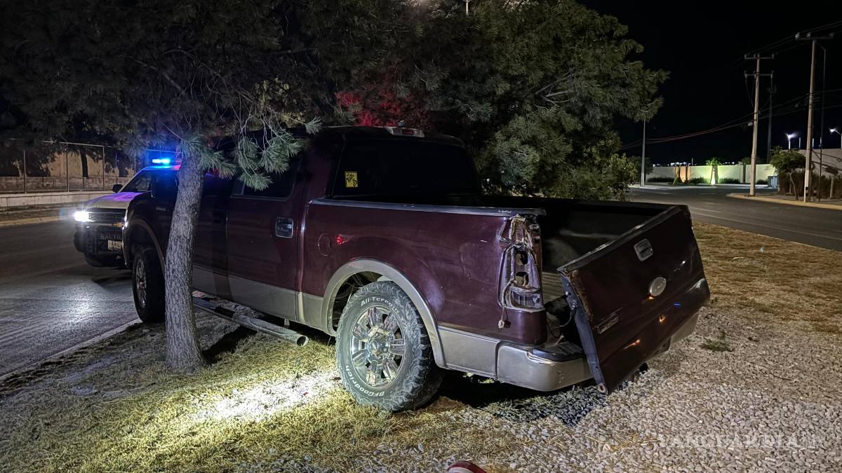 Conductor abandona camioneta tras chocar contra un árbol en Saltillo