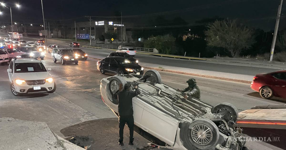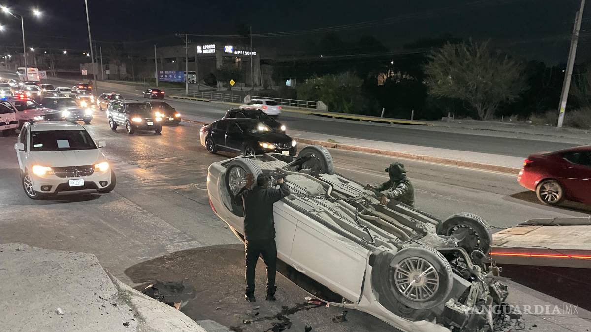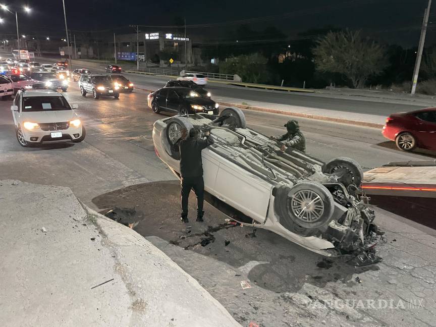 Conductor choca y vuelca en el Periférico de Saltillo