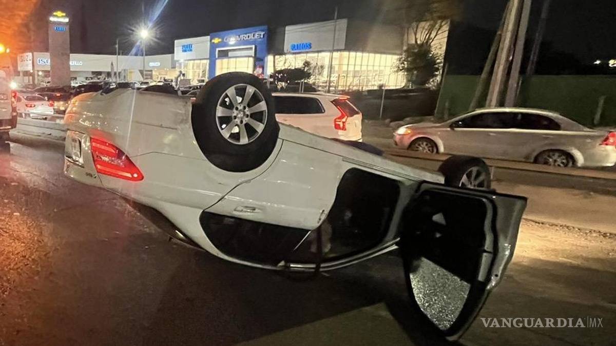 De acuerdo con los primeros reportes, el conductor de un Mercedes Benz perdió el control del vehículo y chocó contra la base de un puente que conecta con el bulevar Manuel Acuña. El impacto contra la base provocó la volcadura, y el vehículo quedó en los carriles laterales.