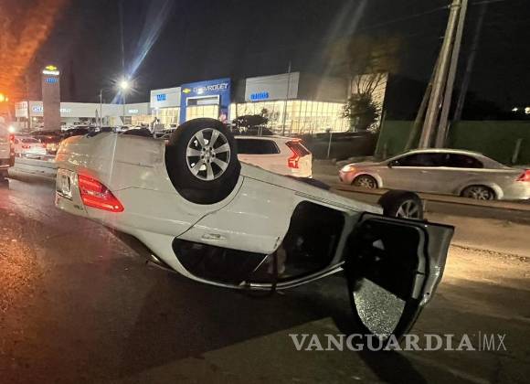 Un accidente automovilístico con volcadura se registró la tarde de este jueves en el bulevar Miguel Ramos Arizpe, a la altura del puente vehicular en la colonia Capellanía.
