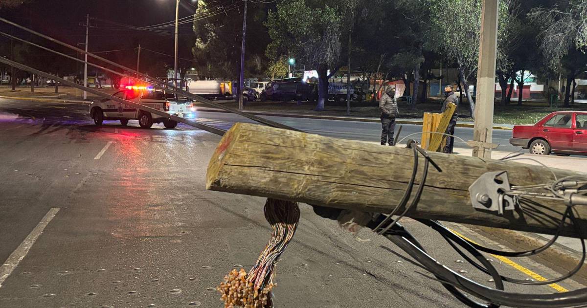 Un conductor derribó dos postes de madera y posteriormente huyó del lugar, presuntamente tras perder el control del volante al pasar sobre un charco de agua en el bulevar Paseo de la Reforma, al oriente de Saltillo.