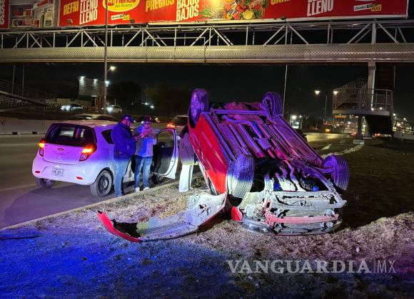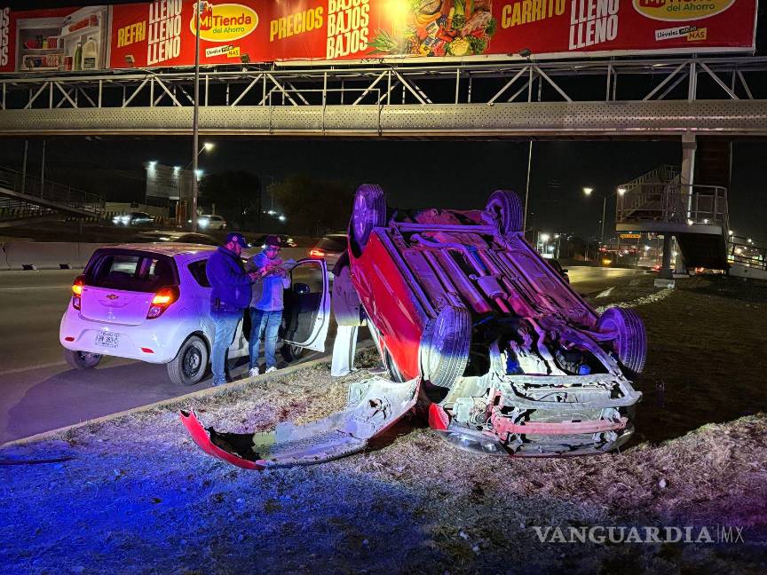 Conductor ebrio desata caos vial: choca y causa volcadura, al oriente de Saltillo