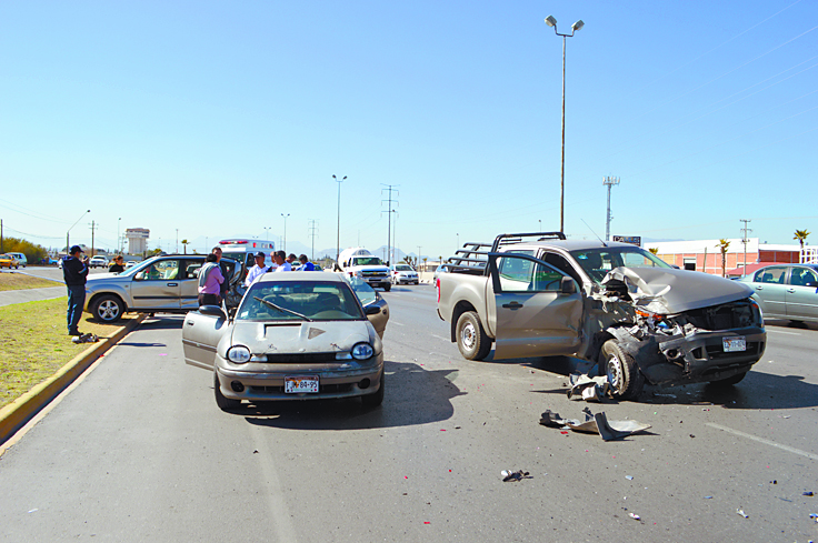 Saltillo, Coahuila. Un descuido por usar el celular mientras conducía originó que el conductor de una camioneta ocasionará un aparatoso accidente en el bulevar Fundadores, a la altura de la entrada a la colonia Mirasierra.