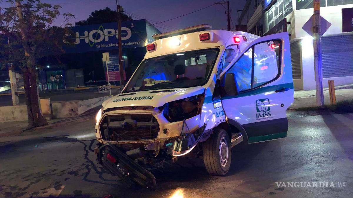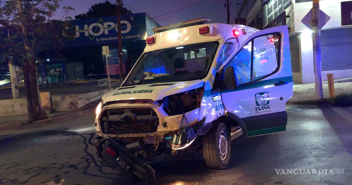 Conductor se pasa un alto e impacta ambulancia del IMSS al norte de Saltillo